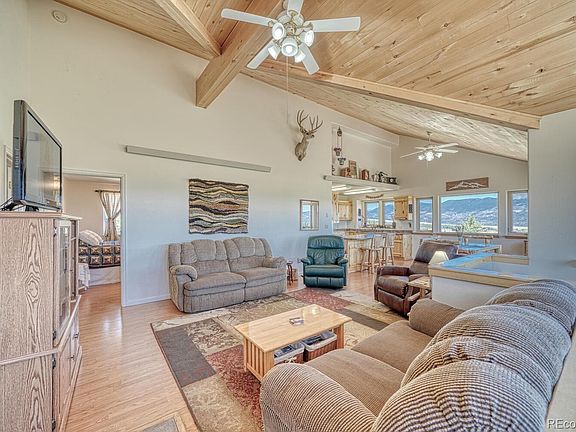 Major price improvement! Located in the desirable Game Trail neighborhood, this home features a relaxing floor plan with panoramic mountain views and lots of natural light. 3 bedrooms and 3 bathrooms provide plenty of room for everyone plus a large great room and bonus room in the basement. Fenced patio area / dog run between the house and the large detached garage provides a great space to hang out around the fire with a view of the mountains. This home is located right on the edge of the trees so you can have great views without being out in the open. Located just off pavement and adjacent to community open space and mailboxes, you can't beat this convenient location just 7 minutes from downtown Buena Vista.