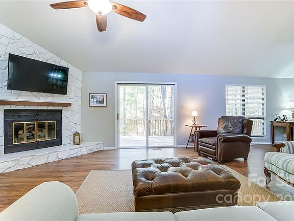 Fully renovated Tega Cay ranch home with finished basement sitting on 2 large wooded lots! Kitchen features white shaker cabinets, large island, stainless appliances and a pantry. Spacious great room with vaulted ceiling overlooks private wooded backyard. 3 bedrooms on main level. Basement has huge storage room, large 2 car garage, movie/media room with home theater speakers installed and a 4th bedroom with half bath or office. 2 large decks for entertaining and grilling plus a fire pit area and parking pad at the street. 3 way mini split AC system.Lots back to protected greenway area and a Tega Cay walking trail. Pitcairn Park and public boat ramp only a 1 min walk. Runde Park athletic fields appx 6 min walk. Great location!