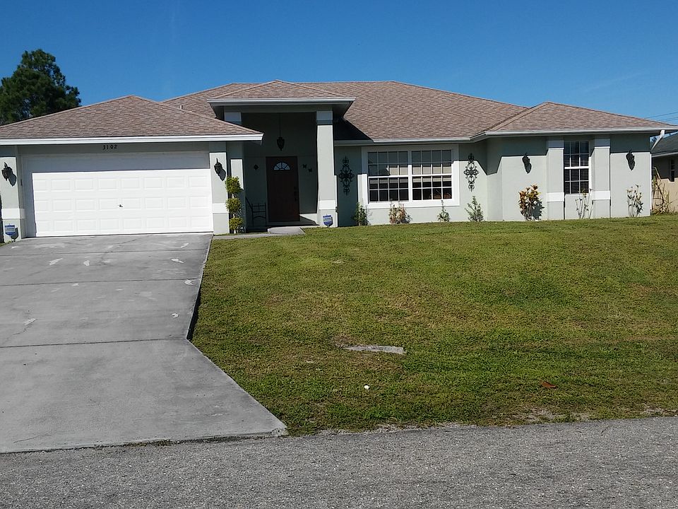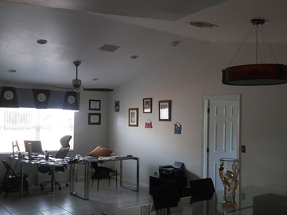 This large 3 bedroom 2 bath home with 2 car garage converted to a fourth bedroom, large lanai tile throughout 24x24, new kitchen with stainless steel appliances, granite counter tops, new bathrooms, dining area, living room, family room and laundry room with top of the line washer and dryer. Brand new shed in the back. This house shows like a model home. Iron details included. This property is sold As is.
