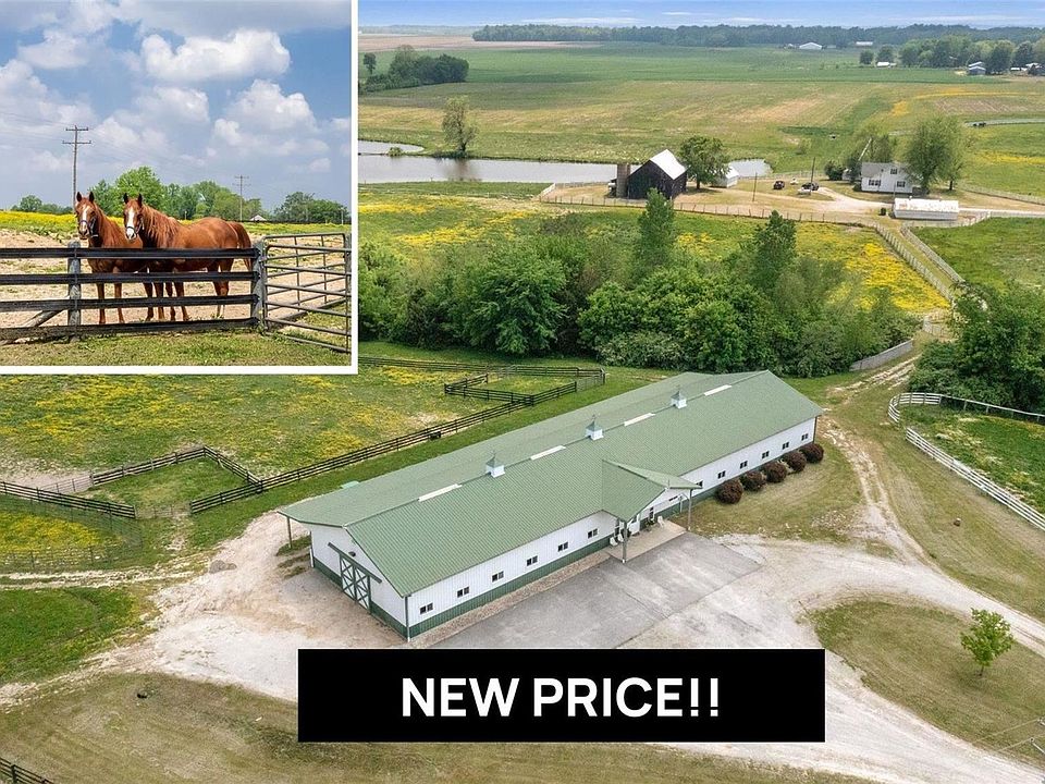 STUNNING EQUESTRIAN PROPERTY including 71.88-acres, 18-stall stable, 3 horse shelters & 3-acre lake; perfect location for your new house! The well-equipped stable features sliding doors, heated foaling stalls, horse shower, and medical room. Enjoy the convenience of a full bath, air conditioned office, and storage. With vinyl and cable-reinforced fencing, this gently rolling property ensures safety and security for your horses. Additionally there are about 30 tillable acres, a large barn, tool shed, smoke house, and caretaker's 1800's historic house (2-3 bedrooms) being sold as-is without repairs. Don't miss this opportunity to fulfill your equestrian dreams! Pre-approval required prior to property tours. Sellers do not wish to divide the property. DON'T MISS OUT ON THIS ONCE-IN-A-LIFETIME OPPORTUNITY TO OWN A MAGNIFICENT HORSE FARM! Call today for your private tour! Buyer should independently verify all MLS data, which is derived from various sources and not warranted as accurate.