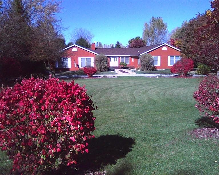 5.85 Acres of Beautifully Wooded Grounds Surround this well maintained over 2,600 sq. ft., 3/4 bedroom, 2.75 bath ranch home which could qualify as a Hobby Farm. Upon entering you will experience the large 24 X 26 vaulted great room that has patio doors leading to large back yard patio for relaxing and entertaining. The spacious country kitchen has ample cabinets with convenient pantry and flows to the family room with fireplace. The master suite has double walk-in closets, private full bath equipped with over sized soaking tub, separate shower and patio doors that lead to the gazebo with hot tub ideal for relaxing after a hectic day or that romantic interlude. Additional amenities include finished basement, 3+ car garage to delight the auto enthusiast, whole house generator and circular drive lined with flowering trees.
