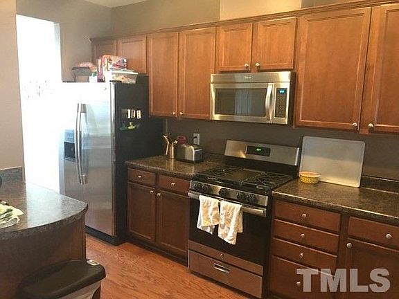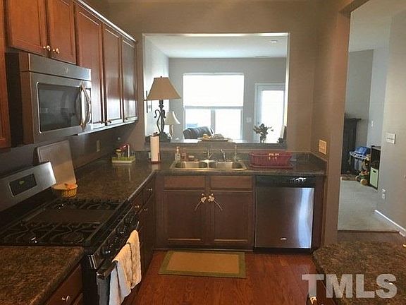 Available 7/10. Great North Raleigh Home. Downstairs has modern kitchen with stainless appliances located between dining room and family room. Great laminate floors downstairs and gas firelace. Upstairs has double master bedrooms, each with own bath. Washer dryer included. Assigned parking. Sq ft. not pro measured. Welcome home!