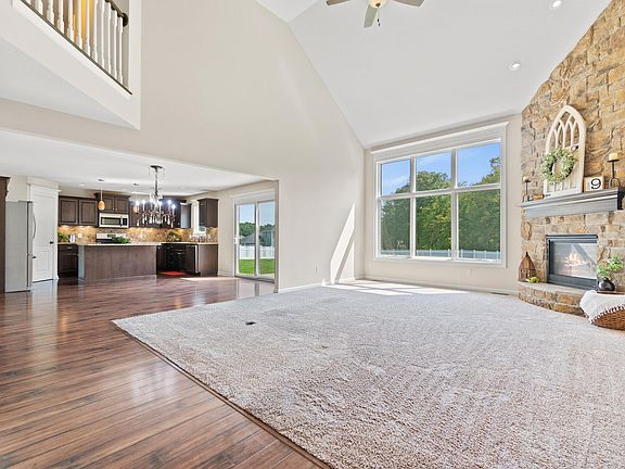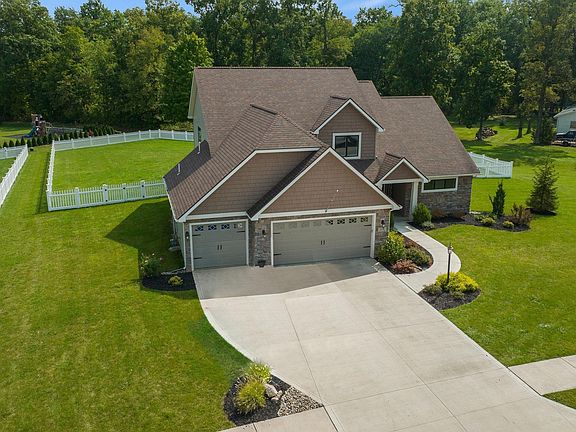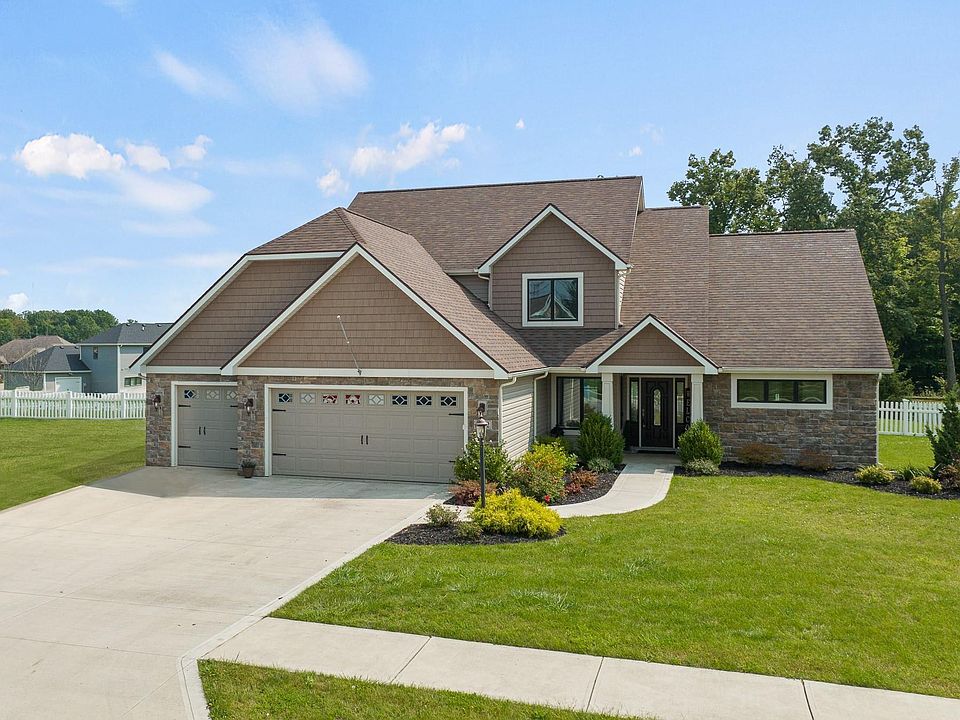 OPEN HOUSE SATURDAY 9/24/2022 1-3 pm. This beautiful 7 year old custom built home has been impeccably maintained - like getting a new home without the wait. Perfectly situated on a beautiful .62 acre lot with a fenced in back yard, this home offers 2409 sq ft with a main floor owner's suite, with three spacious bedrooms and a full bath with double vanity upstairs. Entering the home from the welcoming covered front porch, you'll be greeted by a soaring foyer that leads to the great room. The large great room boasts 17 ft high ceilings with beautiful crown molding. Large windows provide excellent natural lighting and a gorgeous view. The focal point of the great room is the massive stone-facade, floor to ceiling fireplace with raised hearth. A main floor flex room is perfect for a home office! The open kitchen features stainless steel appliances, custom cabinetry with soft under cabinet lighting, granite counter tops, tile backsplash, large prep island and a huge walk-in pantry. A large main floor owner's suite boasts a tray ceiling, a private en-suite with a huge tiled walk-in shower, double vanity, and an oversized walk-in closet. Upstairs you'll find 3 nice sized bedrooms with generous closets, and a full bath. The huge back yard is private and backs up to a beautifully wooded area. Conveniently located by the garage entrance is a large main floor laundry with built-in locker cubbies. Maintenance free vinyl fencing is such a bonus if you have children or pets. Located within minutes to shopping, restaurants, and entertainment opportunities. Average utilities: AEP Electric - $180.00, City of Ft Wayne Water/Sewer - $86.00, Nipsco Gas $67.00 Trash Service is Republic - paid quarterly $161.00