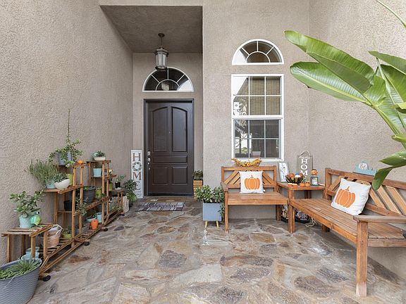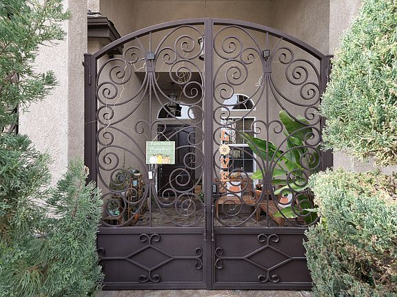 Situated in a serene neighborhood, this custom built home exudes charm and beauty for discerning buyers. The large wrought iron gate ushers you to the front courtyard that leads to the front door. The 2,600 sqft living space is complimented by large 10,000 sqft lot to accommodate spacious 4 bedrooms and 2.75 bathrooms. Open floor plan with impressive 20 feet vaulted ceiling with 5.1 surround sound system connected to the spacious kitchen provides delightful entertainer's experience. The gourmet kitchen is well equipped with large granite center countertop, high end stainless appliances, 36 inch stovetop, extra large exhaust fan and upgraded Kitchen Craft mocha cabinets. Interiors are mostly installed with Italian wood-look poreclain tiles in addition to special tiles in bathrooms. Large primary suite has high ceilings to let in abundance of natural lights, complete with study area and great size walk in closet. The primary bathroom is equipped with individual shower and jetted bath tub to provide relaxing ambiance. Extra amenities such as water softener system, OWNED 9.18 KW solar panel system on the newer roof, two separate air conditioning systems, and 3-car garage, making this one of the most desirable homes in the area.