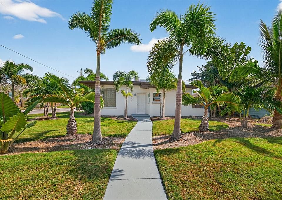 Live the Gulfport lifestyle in this bright and breezy 2-bedroom, 1-bath home with a flex space perfect for a home office, art studio, or guest room. Sitting on a corner lot and just under 1,300 sq. ft., this home offers plenty of room to relax and enjoy the laid-back Florida vibe. You'll love the tile floors throughout, new windows, and brand-new Samsung appliances in the kitchen. Natural light fills every room, giving the space a fresh, airy feel. Outside, unwind on the back patio surrounded by mature tropical landscaping, or rinse off after a beach day in your outdoor shower. The 2-car garage provides lots of storage for your bikes, beach gear, or weekend projects. All this just minutes from Gulfport's waterfront district, with its local restaurants, shops, and weekly markets. Come see why everyone loves calling Gulfport home!