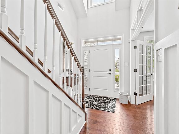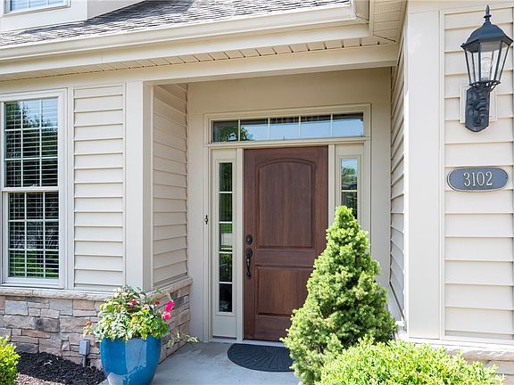 This home is truly special with every detail thoughtfully selected! Board and batten moldings, interlocking wood beam ceilings, radiant heat flooring, upgraded light fixtures, and cathedral covered patio w stone privacy wall are just a few of the unique features. Den w wall of built-ins. Kit island w granite top & salad sink. Leather granite tops, farm sink, vented range hood, energy-saving induction cook top/convection oven, addit convection oven, microwave, under cabinet lighting. Dining rm dry bar w glass-front cabinetry, wine rack, wine refrigerator. Tray ceiling, stone front gas fp in living rm. Master inc. cathedral bath w soaking tub, tile shower, walk-in w custom shelving. Guest suite w walk-in and private bath. 3rd bdrm w huge walk-in. Hall bath w dual bowl vanity and tub/shower. Oversize garage w cabinetry & workbench. Fenced pet area w raised garden bed. Fenced rear yard. Home site extends to walking trail. HOA covers landscaping, snow removal, community center, and pool.