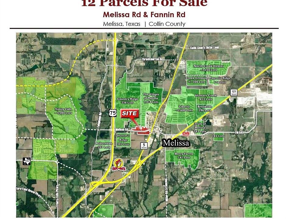 Over 25 acres of Prime Real Estate in the Fast Growing Melissa, Texas. City of Melissa has plans to extend Melissa Rd further east through town from the point where it meets hwy 5 past the water tower and post office. Texas dept of transportation has also approved a red light for that intersection at hwy 5 as well. Melissa Rd will be the new main artery for the city. There are many parcels to this property that include 3 homes and 2 barns. There is frontage on both sides of Melissa Rd as well as frontage to hwy 5, and frontage on Fannin Rd as well. This is certainly a one of a kind opportunity.