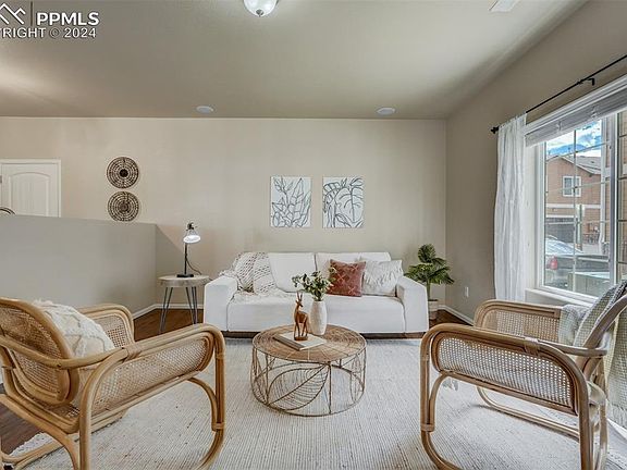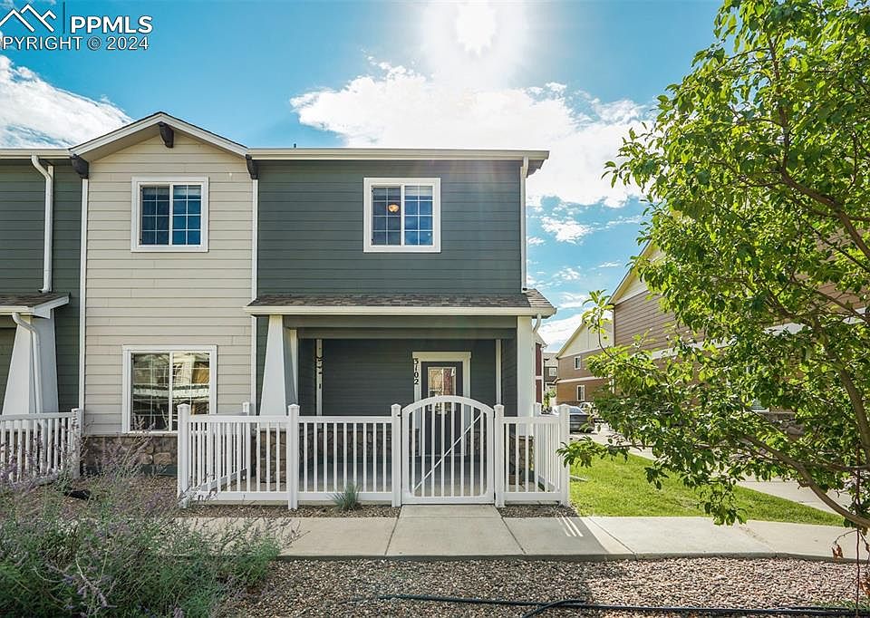 This pristinely maintained end unit townhome is located in the heart of Colorado Springs and offers picturesque Mountain Views that will take your breath away. This cozy, yet very spacious home features modern amenities and finishes, including a gourmet kitchen with slate appliances, under-cabinet lighting, granite counters, and birchwood cabinets. The spacious main level has an open-concept floor plan with tall ceilings that's inviting and perfect for gatherings. Upstairs is even better, with the Primary Suite that has more space than you’ll ever need! The attached on-suite bathroom with granite counters & huge walk-in closet is something you don’t see often! The loft upstairs is the perfect office or game room. Two additional bedrooms, another full bathroom, and a generous sized laundry room are all located upstairs as well. There are storage closets throughout, along with an over-sized 2 car garage. The front patio has a fence which creates a nice space to enjoy morning coffee & Mountain Views. Access the nicely maintained open space directly in front of the unit for daily walks. There is also whole house surround sound as well. Walk to a top-rated Elementary school, while just a short commute to downtown, COS Airport, Peterson Space Force Base, and much more!
