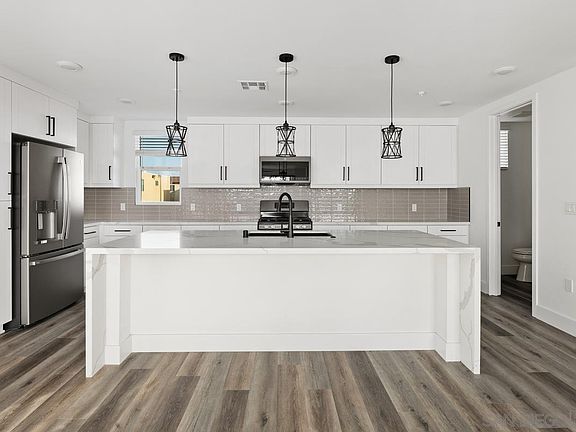 This contemporary & luxurious three-story townhome in the heart of Carlsbad Village has all the modern upgrades youre looking for, including a Nest thermostat, tankless water heater, and pre-wired so your residence is smart home ready! Top quality finishes include quartz countertops, luxury vinyl plank flooring, black slate GE Profile appliances, luxury lighting package & ceiling fans, top of the line Moen faucets. Relax & unwind on the 363 square foot rooftop deck while taking in beautiful views of scenic Carlsbad! Enjoy a tech/media area & 2 car garage! The open floor plan is light & bright with a bedroom & bath located on the main floor living area. Within walking distance to the beach & Carlsbad Village.
