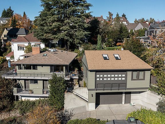 Modern Contemporary w/mid century vibe.Sun filled rooms invite you into this exceptional home.Formal living/dining,but the real fun is in open kitchen & family room-delight for both serious cooks & guests.Remodel inclds custom maple cabinets & tile throughout,6 burner DCS range, & chiseled granite counters in kitchen.South & west facing 180 views from Mt Tabor to downtown.Oversize garage w/675 sqft studio/office/apartment above.Either enjoy wrap around deck w/views or backyard privacy w/hot tub.