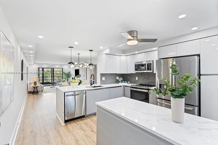 Beautifully finished and fully renovated property in most desirable Active Adult community (55+). European design kitchen cabinets and waterfall quartz countertops. Contemporary fixtures, lighting package and brand new stainless-steel appliances. Experience all that Wynmoor has to offer in style and comfort. 24-hour Guard Gated community with security patrol and manned building. Courtesy Bus, Clubhouse, Fitness center, Business center, Heated Pools, Tennis & Pickleball Courts, Cafe/Restaurant on premises, 962-seat Theater playing movies & approximately 60 live shows per year. 18-hole Golf course membership for nominal annual fee of $580.