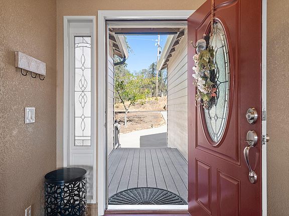 Looking for peaceful, country living with beautiful views? This turn-key home is just minutes from Lake Tulloch and features owned solar and septic for low monthly bills. Gain access to numerous amenities including the Kiva which features a swim area, boat launch, docks, and BBQ pits. You will also have access to Black Creek Park, which includes a clubhouse, gym, playground, creek, sports fields, equestrian trails, picnic tables, disc golf and more. All of this for a low HOA of only $22 per month. This .66 acre lot offers peace and privacy between the neighbors with ample parking for all of your toys and guests. There is easy access to the large driveway on a one-way street with low traffic. The garage is extra deep with a tall door to allow for indoor boat storage all year round. This welcoming home features an open floorplan, vaulted ceiling and beautiful French doors leading to your Trex deck. Back inside, you have easy maintenance with wood-look flooring throughout. The great room leads to the dining area and a tasteful kitchen featuring upgraded maple cabinets with solid-surface countertops. The owner's suite is separated from the other two bedrooms and is a true retreat. The bath features a large soaking tub with beautiful tile work surround, and a separate shower. There is an additional nook perfect for working from home or adding a large second closet. Down the hall, you will find two guest bedrooms with fresh paint, a full-sized bath with a large newly-updated shower, and a spacious laundry room with plenty of storage. Below the home is a large area ideal for a workshop or adding additional square footage. If you enjoy golf, you are minutes away from an award-winning golf course with fine dining and a pro shop. Just a few minutes down the road, you can explore the well-loved Town Square and enjoy wine-tasting, dining, shopping and seasonal concerts and activities. If you love the snow, Bear Valley and Dodge Ridge ski resorts are just up the hill as well. The easy one hour commute to the valley and 2 hours from the Bay make it the perfect vacation retreat or full-time residence.