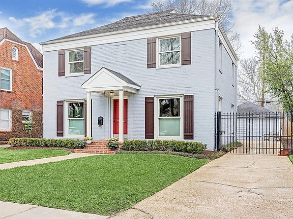 Awesome two story brick West University home with recently completed front porch! The custom red brick of the porch and the welcoming front door opens to a home filled with charm and warmth! You will enjoy the large formal living room with mock fireplace with lovely traditional mantle! The oversize dining room allows for gracious entertaining! The updated kitchen features a farmhouse sink, granite countertops and recent tile backsplash! The light filled sun room/den opens to the back patio and yard! Hardwood floors! Half bath down! Upstairs are 3 bedrooms and 2 baths, the washer and dryer, plus a delightful window seat perfect for curling up with your favorite book! In 2017 many of the windows were replaced with high quality & energy efficient Renewal by Anderson custom windows and screens! Delightful fully fenced back yard with brick patio and driveway wrought iron gate! So close to everything in West U--Walk or bicycle to schools, parks, restaurants & shopping!