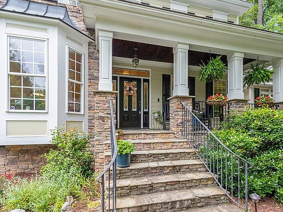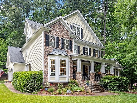 This custom built home located in desirable N. Raleigh has it all! From beautiful, mature hydrangea and foliage outside, to an open floor plan inside. Summer evenings can be spent rocking on the front porch, or walking to Lake Lynn, about a mile away! Enter in the front door and you will notice the site finished hardwood floors, designated office space and formal dining room. The huge kitchen features granite countertops, stainless steel appliances, a walk in pantry AND serving pantry and PLENTY of counter space, all perfect for cooking or entertaining! Enjoy mornings in the sunroom adjacent to the eat-in kitchen, with a private, greenery filled view year round. This custom home has 4 beds, 3.5 baths, third floor bonus plus a huge walk-in attic! Each bedroom has access to a full bathroom and the owner's suite walk-in closet is sure to catch your attention. Easy access to 540, RDU, RTP, TONS of surrounding parks, shops and restaurants, and so, so much more! Enjoy the benefits of this great location without the hassle of an HOA! Welcome home!