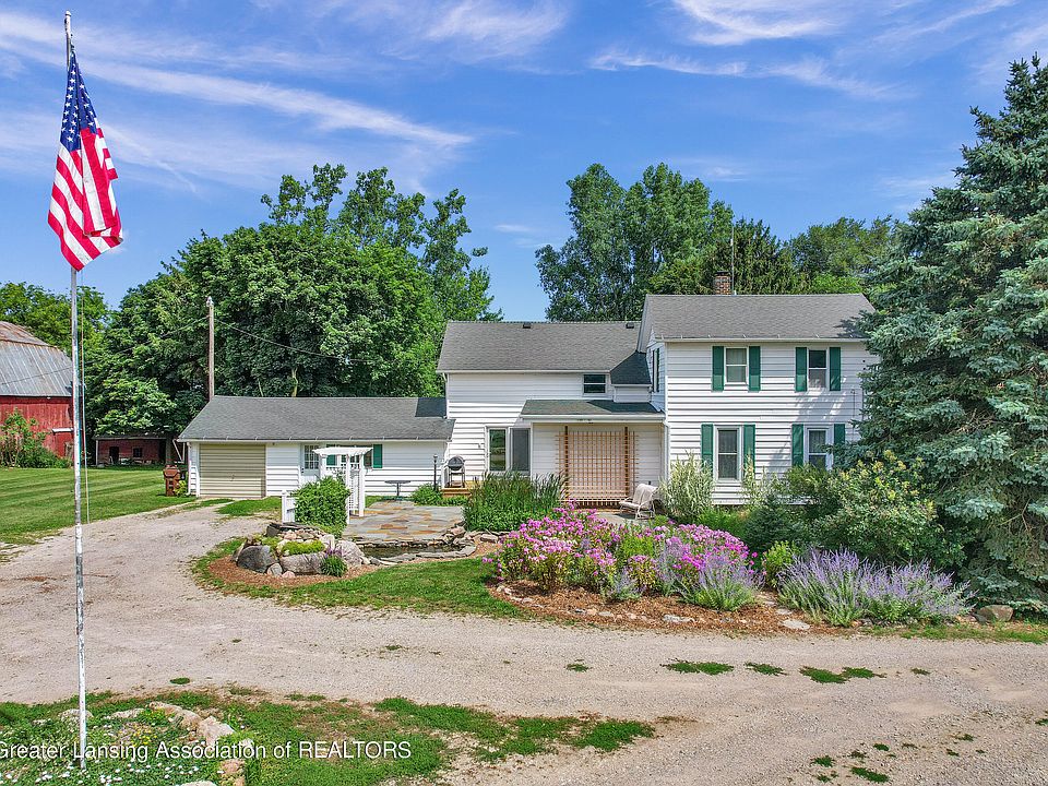 Here is an exciting opportunity for anyone hoping to have a quiet retreat complete with land and endless possibilities. Located on 14 acres just a short distance southwest of downtown St.Johns, this country setting is ready for you. This 4 bedroom, 2 full baths, 2 story farmhouse style home features a decorative kitchen, huge great room, formal dining area, 1st floor laundry, office/den space and large 2nd level bonus room to grab your imagination. The property itself provides 4 acres of woods for hunting or exploring, 7 acres of pasture for animals, possible leasing, or whatever you might visualize. There are 4 out buildings here, including the very special 48x84 pole barn specifically designed for working or playing in comfort. With its heated floor, running water and large 2nd level, you will decide how to best use this incredible space. Perhaps you will expand your hobbies and interests, possibly run a business or store family toys....there will be plenty of room to do it. Come see this beautifully landscaped special property..."The Farm" and you can make it yours.