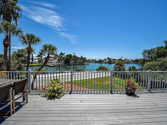 Beautiful 3/3 waterfront home with nearly 180 degree coastal view and walking distance to the famous Don CeSar hotel and St. Pete Beach! Home features nearly 80 feet of waterfront which includes dock and boat lift in a no wake zone. Deep water access for all size boats, dock has power and water, quick access to Gulf of Mexico. Lazarillo park is a stones throw from the house, and features lit tennis/pickleball courts, playground and green space. Home sits on just shy of 1/4 acre property with a large backyard ready for a pool, outdoor kitchen or even mother in law suite, or all three, endless possibilities. Living space is located on the second and third floors so flood insurance is minimal! Air conditioning unit was replaced last year, and two new garage doors were installed last month. Master Bedroom and hall bath were remodeled recently.