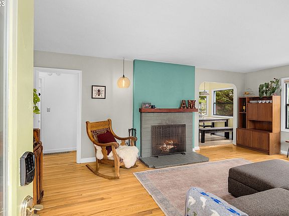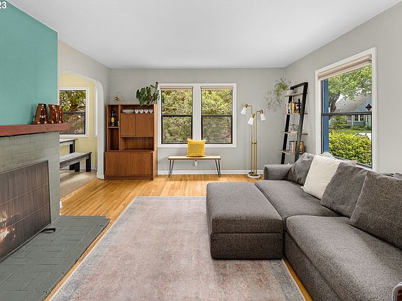 Sweet South Tabor cupcake! Charming 1947 ranch with great circular floor plan, Home Energy Score of 8 and loads of period details including hardwoods, millwork, 2 fireplaces. Light and bright with tons of windows and closet space. Spacious living room with wood burning fireplace, dining room open to kitchen great for entertaining year-round and spills out to the back patio for summer evenings with family and friends. Main level has 2 large bedrooms with double closets and full bath. Just finished and permitted lower-level remodel featuring a cozy family room with gas fireplace, huge bedroom, stylish bath with walk-in double shower, laundry and lots of storage space. Amazing perennial gardens surround this home including a private, fenced backyard with garden beds, tons of flowers and mature plants. Chicken coops stay too! Newer roof, and A/C. Great neighborhood location near Mt Tabor, Montavilla and the action on SE Division. Walk score of 76; Bike score 100!