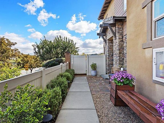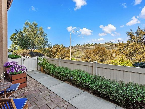 Discover where luxury meets nature. This exquisite Carlsbad home is tucked away inn a peaceful cut-de-sac, end of the street end unit, providing a-private escape with dramatic mountain views that captivate at every turn. Image stepping outside into your personal oasis-a meticulously landscaped backyard designed for both relaxation and vibrant entertaining. Whether you are unwinding after a long day or hosting casual BBQ, the built-in seating area and lush surroundings sets the perfect scene.. Inside, the Chef's kitchen ; well designed cabinets, sleek quartz countertops, detailed stone backsplash, a single sink pull down faucet, and a generous walk-in pantry. The built-in wine refrigerator cater to both the practical and the indulgent. Elegant rich colored wood-like LVP flooring flows through out the home, lending to a thoughtfully arranged loft that separates the guest rooms from the primary sanctuary. The expansive primary retreat is in itself, complete with its own balcony, mountain views, a spa like bathroom featuring walk-in shower, dual sink areas, and a sizable walk-in closet. Additional highlights include tankless water,EV hookup, paid Solar, 2 car garage, 1835 square feet of living space,3 beds-3 baths. Located in Carlsbad newish planned community. Enjoy the report like amenities, beach entry pool with swimming lanes, jacuzzi , full gym, BBQ area with ample seating, outdoor fireplace with lounging area, playgrounds, parks, hiking trails, and a gated dog park. All surrounded by 156 archers of natural Preserve. Top Rated Schools.