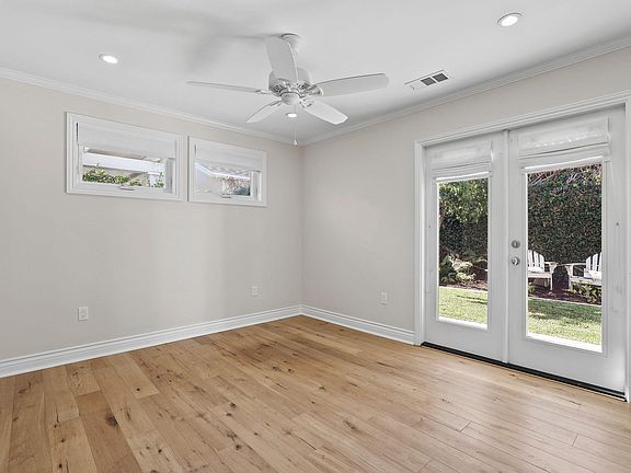 Remodeled single story Rossmoor home offered furnished as shown excluding a couple antiques and some accessories. Sitting on an oversized corner lot across from Rush park, features beautiful hardscape and landscape with flagstone surfaced front courtyard enclosed with white picket fence, automated sprinkler system with multiple zones/setting options set to minimize water use, covered sunken conversation area with surrounding gas/wood burning fireplace clad in flagstone and covered built-in BBQ. (Twin Eagle brand) island with sink, storage and mini fridge, poured concrete counter, clad in flagstone to match FP and other vertical structures, XL spa with water feature (adjustable spillway for waterfall effect) and trex decking and nice grass area, 4 outdoor speakers (Sonos), ceiling fans and is a low-maintenance upkeep. Interior (completely remodeled - taken down to studs in 2013-14): The double-door entry is embellished with beautiful lead glass panels. The living room's focal point is a marble fireplace set between full-size windows with window seats. The formal living room is located off of the kitchen. It is currently being used as a music room. The vaulted ceiling has recessed lighting and Sonos sound system. The gourmet kitchen has Dacor appliances with 6 burner gas stove/oven combo, custom cabinetry w/ paneled dishwasher and fridge to match, farm sink with decorative faucet and deck mounted sprayer, high-powered/quality vent-a-hood, custom island with built-in microwave and storage drawers/cabinets, solid stone surfaces (matte finish granite and Carrera marble) counters, The bathrooms are all remodeled with custom cabinetry and marble surfaces, high-end fixtures, custom vanity with porcelain bowl sink in powder room. Flooring all white oak with neutral/medium tone and marble bathroom floors. Has all custom lights throughout the house from Ferguson and McNally and recessed lighting to complement. The indoor outdoor feel comes together with the folding door adjacent to the dining area that opens completely to the exterior entertainment zone. Additional Features include: tankless hot water heater, two HVAC units to help custom regulate temp in "wings" of house, two stacking full-size washer dryer units in garage with direct garage access to house, Epoxy finish on garage floor, storage cabinets and shelving - drive-through driveway. Located in the Award Winning Los Alamitos School District and close to the Shops of Rossmoor. Tenant pays for all utilities. Landlord pays for spa maintenance and gardener.