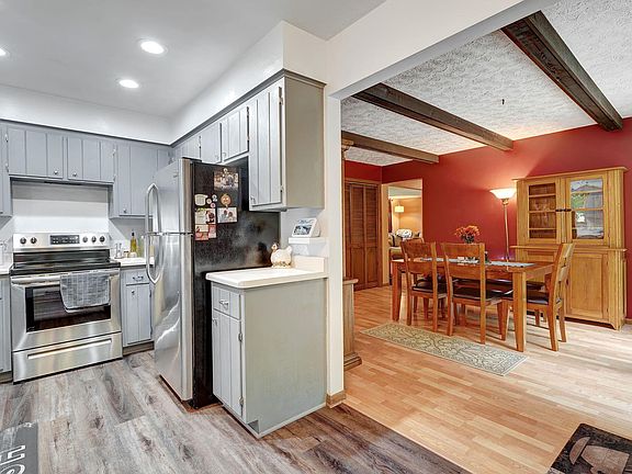 This 3 BD, 1.5 BA Caledonia ranch home set on a beautiful wooded mature lot, has been in the same family for 45 years! Picture yourself and your family enjoying the .27 acre fabulous yard, patio and firepit. There is plenty of room to tuck your boat or RV next to the house. Compressor stays with the house and has lines that run both to the attached 2.5 car attached garage and basement workshop. Inside you will find an updated kitchen with new LVP flooring and freshly painted cabinets. Adjoining room is currently being used a a dining room and has beamed ceiling. Large living room with picture windows. Lower level family/rec room has tons of recessed lighting, a nook for a bar and is just waiting for your decorating/finishing ideas. Steps away from MRK Trail. Don't miss this one!