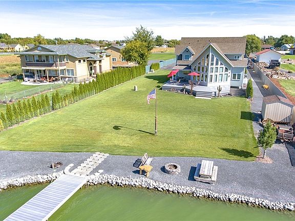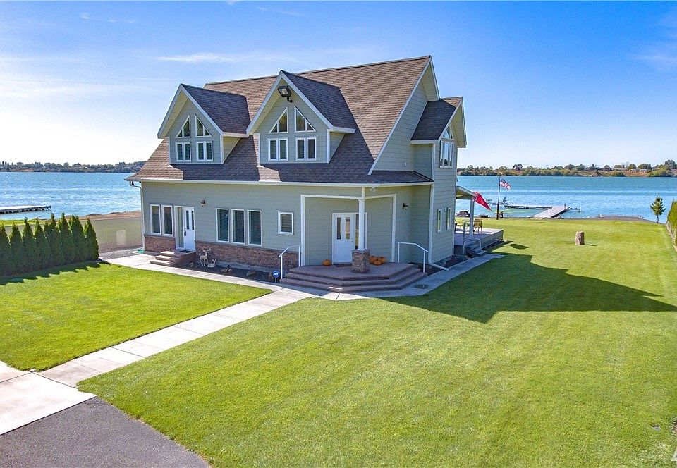 Fantastic location for this Peaceful Waterfront home with dock & boat launch. Easy flow home that has all the bells & whistles you could imagine, a second Master bedroom on the main level. Plenty of large Low E windows with a never-ending view. Dual heat pumps, wired for sound, propane fireplace, stove plumbed for gas, 10' Sunsetter shade, water feature in the lake, fully landscaped lot, 3 car garage, full concrete crawlspace, some furnishings for sale, boat lifts not included. See today!