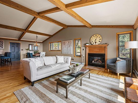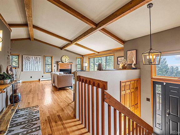 This stellar home ticks all the boxes. Private and secluded, this beautifully maintained home boasts majestic mountain views as far away as Pikes Peak. All new Anderson Renewal windows installed 2019 add ambiance and value along with the added benefit of new interior paint and updated light fixtures. This home lives large with ample rooms throughout and an easy open floor plan! The main-level has beautiful hardwood floors, vaulted and beamed ceilings with impressive views from the many South-facing windows. A well-designed kitchen includes large pantry, granite counters, wine cooler, center island, breakfast bar and under cabinet lighting. The adjoining dining area opens to the deck and is perfect for large gatherings and entertaining. The main-level features a spacious master suite and two additional bedrooms. The lower level has in-floor radiant heat throughout with a large fourth bedroom and walk-in closet that adjoins the ¾ bath perfect for guest quarters, mother-in-law suite, art studio or substantial private office area. The lower-level family room not only shares the stellar views but includes an additional private exterior entrance giving options for enhanced work/live environment. The spacious laundry room includes awesome storage, washer/dryer and freezer. Radon system installed in 2015. Attached oversized two-car garage with storage and workbench rounds out this functional and spacious home. South facing Asphalt driveway makes for easy access. Pike View is a school bus route, paved and county-maintained. All just a ten-minute drive to Conifer. Adjoining lots create a total of .9 acres. Spacious home! Big views! Great location! An absolute pleasure to???????????????????????????????? see.