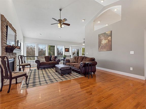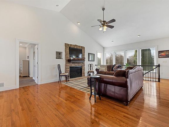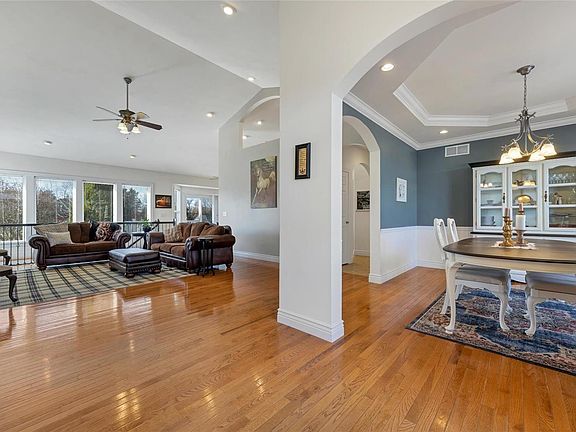This stunning home offers over 3,500 sq ft on a 3 acre, level lot that backs to trees! You will immediately notice the quality throughout with arched doorways, wood floors, vaulted ceilings and crown molding! The open floor plan starts with soaring ceilings in the Great Room with stoned, gas fireplace and an open staircase with lots of windows, creating natural sunlight. Continue to the Breakfast Room and Kitchen, with custom cabinets, lovely backsplash, granite countertops, SS appliances and walk-in pantry! The Master Bedroom with coffered ceiling is tucked away from the secondary bedrooms, and offers a bathroom suite with tiled, separate tub and bath and his/her closets. Fantastic, finished LL with rec-room, media room, extra bedroom, full bath and bonus room that can be used as a playroom or exercise room! Maintenance-free deck, insulated, oversized 3-car garage, newer roof, 2 water heaters and only 3 miles from Hwy 70! This fabulous home is clean and move-in ready!!!