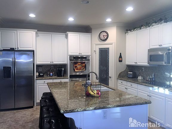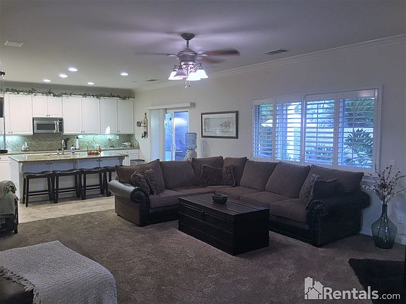 Available 12/15. Single story Canyon Lake home features 3 bedrooms plus an office, two bedrooms include their own full bath, 9 kw solar system, whole house fan, open kitchen to the family room, stainless steel appliances including refrigerator, island, granite countertops, walk in pantry, fireplace, ceiling fans, window shutters, crown molding, master bath with separate tub & shower, walk in closet, his/her sinks, large patio cover, no neighbors directly behind, low maintenance backyard with waterfall and synthetic grass, and HOA amenities included.