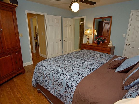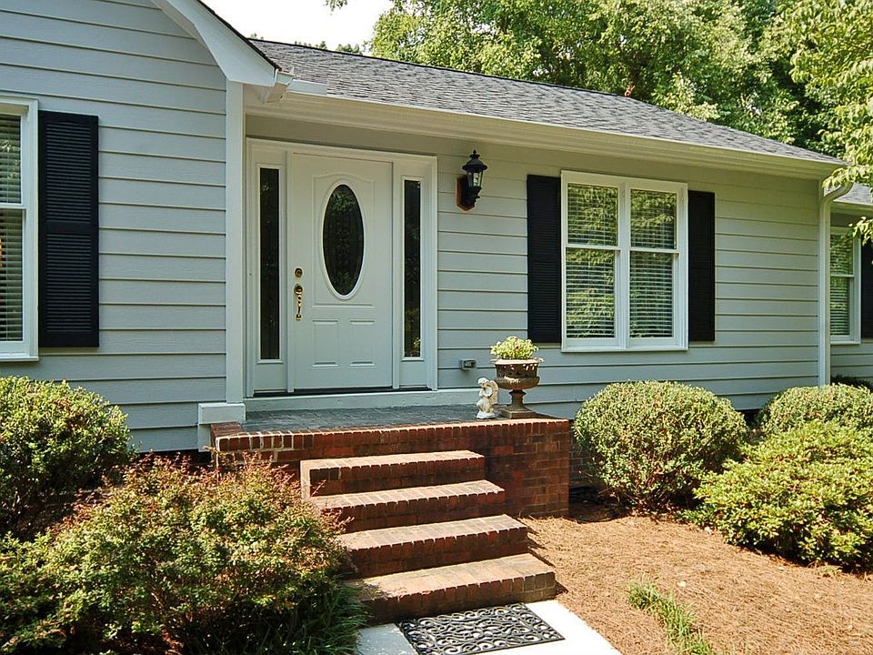 Very well appointed 3 bedroom ranch in Raven Ridge w/ XL lot. Hardwood floors throughout. All appliances included. Large LR with built-ins & f/p. Formal DR. Updated baths. Master bath w/ dual vanity & beautiful walk-in tile shower w/ 2 heads. New Hardy plank siding. Large deck perfect for entertaining or relaxing. Outdoor speakers remain. Detached garage has been partially converted to "mancave", shop or office. Window unit for heat & cool. Could be returned to large one car garage. Recent roof.