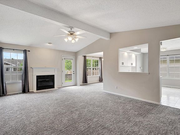 Stunning 3 bedroom 2 bath with attached 2 car garage. This Timberline ranch is move-in ready. It has fresh premium paint inside and out, new hardware and some light fixtures, brand new carpet, new roof 2 years ago, new shutters, siding, screens, curtains, and the deck and half of the HVAC system a few years ago. It has an open floor plan, cathedral LR ceilings, gas-log fireplace, dining room, laundry room with washer and dryer, and much more. Huge Master bedroom with en-suite bathroom and two larger guest bedrooms.