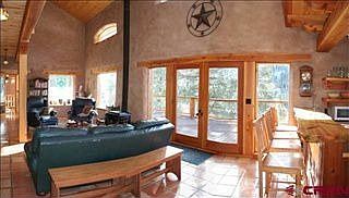 Privacy, serenity, beauty and energy efficiency make this end of the road, adobe home special. $5000 buyer credit towards closing costs. There are 4 bedrooms and 4 full baths, 4200 square feet on 40 acres adjacent to the San Juan National Forest. 16 inch adobe bricks and passive solar keep this home warm in the winter, cool in the summer and your utility bills low Custom finishes abound including tongue and groove, catherdral ceiling, travertine tile, Douglas Fir posts, unique bathroom fixtures and finishes, warm berber carpet in the bedrooms and custom kitchen cabinets. Passive and active solar and radiant floor heat. 726 square foot deck overlooking wildlife filled mountain side. Large lower level storage. High producing well (see associated documents) and 1800 gal cistern. DSL internet available.