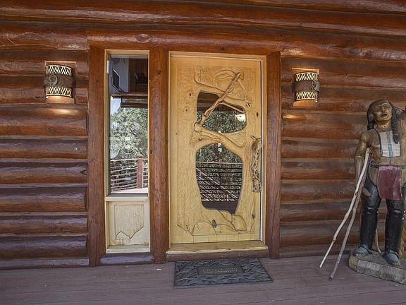 Luxury Log Cabin and Guest House-Navajo Hogan is located in one of Arizona's Finest Private Golf Course Communities! Main home offers inviting great room, master suite on main floor, large loft are with separate master suite. Lower level offers guest room w/walk out, wine cellar, large storage, library, game room and office w/walkout to private location of the hot tub. Then enjoy the walking path around the Indian Ruins, landscaping, ponds, waterfall and bridge welcome you to the Navajo Hogan that provides the feel of the Southwest when you walk in the door you are greeted with authentic Navajo dA(c)cor: Beehive Fireplace and Native American Mural welcome you. Two bedrooms and one bath provides more than enough room for your guests to stay overnight or long term stays.