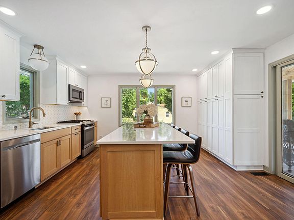 Don't miss this completely renovated 4/bed, 2-bath SLP home. Huge new kitchen includes quartz counters, island with seating for 6, SS appliances, and a wall of built in storage/pantries (2020). Home maintains historical details and charm including cove ceiling, picture rail, period trim & select light fixtures. Basement was completely renovated in 2021 with oversized garden terraced egress windows in both family room and the owners suite with 3/4 bath, bringing in lots of natural light. Renovation also included spray foam insulation and drain tile with sump pump. Current workshop has been fully finished and could also be used as a home office, gym or more. Walk out through three season porch to a nearly 1/4 acre lot, gorgeous pollinator garden and room to play or entertain! Roomy 2 1/2 car garage has staircase to upper storage loft. New roof & water heater in 2021 and many updated electrical fixtures throughout home. Close to Highway 100 and walkable to several parks and playgrounds.