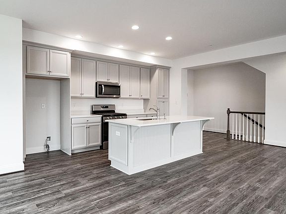You can walk to fun, food and fitness at Hastings, The Great American Neighborhood in South Fayette School District. Surrounded by 600 acres of preserved parkland and adjacent to Boyce Mayview Recreation Center. The Edris end townhome floorplan offers 1,770 sq ft of low maintenance living with 3 bedrooms, 2.5 bathrooms and attached 2-car garage. The foyer welcomes you into the home with an attached 2-car garage and dedicated laundry room finishing out the first floor. The main floor offers an open loft layout with a modern kitchen with large dine-in island, breakfast area and great room with floor to ceiling windows providing plenty of natural light. The upper floor features an Owner's Retreat with a private Owner's Bath with large double vanity. Two additional bedrooms, full bath and ample hall closet space finish out the upper floor. This end townhome comes with linen painted cabinets, quartz countertops, tile kitchen backsplash, stainless steel gas appliances and more.