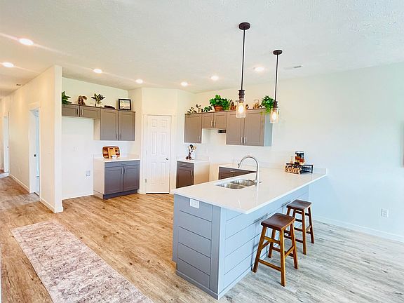 Newly constructed home. NW area, conveniently located close to hospital, shopping and restaurants with Zero entry open floor plan. Home boasts several builders' upgrades-beautiful quartz countertops throughout, large kitchen island, 2 abundant pantries, electric fireplace. nine-foot ceilings, primary bath with double vanity, walk in closet and walk in shower. Plenty of natural lighting throughout. Backyard has a country feel with a nice sized poured patio, landscaping around the home and auto sprinklers. Call today for your private showing!
