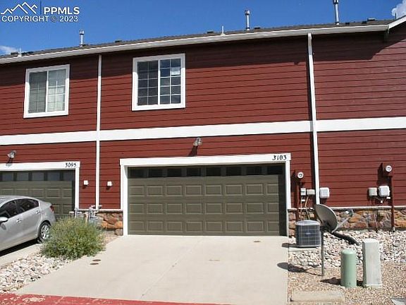 This is 1561 sq ft townhome with 3 bedroom, 2.5 bathroom and a two car garage. The main level is an open concept. A large living room and an adjoining kitchen. The kitchen offers ample counter space, sleek black appliances, a kitchen island, and a pantry closet. A 1/2 bath is also on this floor. The two car garage is right off the kitchen The primary bedroom is located on the upper level, it is a retreat with a large bedroom and a walk-in closet. The attached primary bathroom features a dual sink vanity and a separate luxurious bathtub. The laundry room is on this level and close to all bedrooms. Washer and dryer are included. Located 15 minutes from Fort Carson, Peterson Air Force Base, Downtown, Manitou Springs, and nearby shopping, dining, and major roads for convenience!