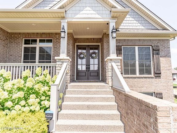 This gorgeous craftsman designed home is just minutes from the Oldham County Campus. Sitting in the sought after neighborhood of Heather Green. The 4 bedrooms, 3.5 baths are perfect for the growing family. The buyers will love the attention to detail this home offers from lighting to the extensive trim package.An open concept with dining room, eat-in kitchen, and great room with a coffer ceiling and fireplace. The eat-in kitchen has an abundance of granite counter space, plenty of cabinets, a gas range, and a massive island. There is a first floor primary bedroom and bath, with bath consisting of a large shower, his and her vanities, soaker tub, and everyone will love the walk-in closets with plenty of shelving. The other two bedrooms are located on the opposite side of the house along