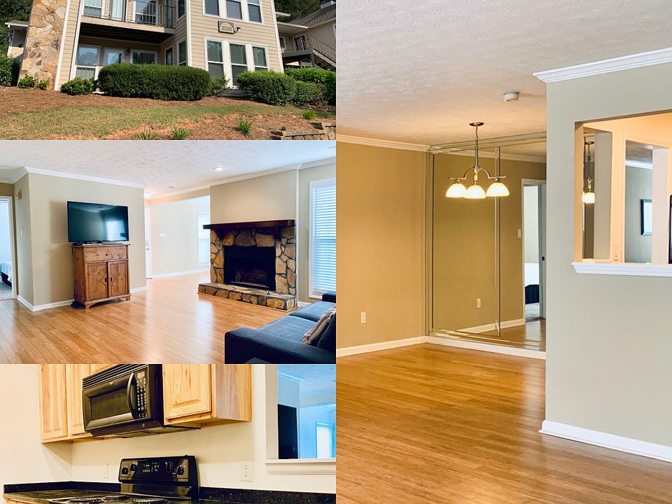 New roof installed May 2019 new AC November 2015, all new kitchen and baths, as well as new hardwood and carpet. HOA repainting exterior siding, trim, and doors June 2019. This is it! Great value for a first time home buyer! Location second to none for busy professionals. Quick, easy access to 400. Popular split bedroom floor plan condo is the best deal in the complex! It also has a sun room and flagstone fireplace! Bright, open layout. Convenient to shopping and dining. Low maintenance living at its finest!
