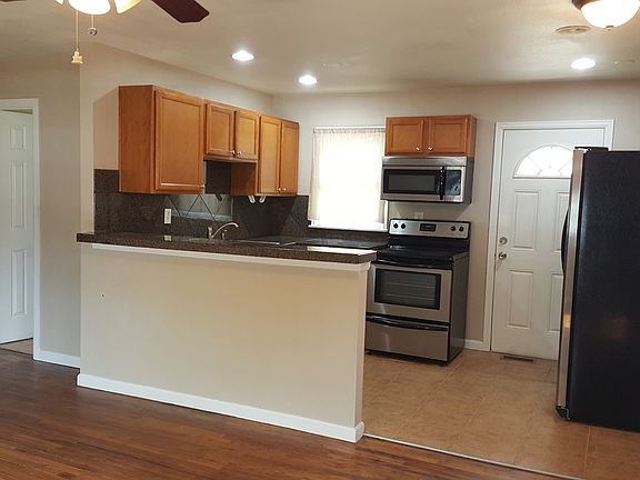 We have one beautiful, smaller home with a giant 2 car oversized garage as a RENT TO OWN only. This home has 2 bedrooms and 1 bathroom. Wood floors in living room and bedrooms and tile in the kitchen and bathroom. Remodeled recently and ready for you to enjoy. All neutral colors throughout. The kitchen has all stainless steel appliances that are included. The monthly payment is $1225/month. The option payment is $3,495 which goes towards the future purchase of the home. Pets will be considered. Excellent credit is not required, but a full credit check, criminal report and eviction report will be processed prior to accepting the applicant. If you want to schedule an appointment to see it, you must go to the home and you'll see a flyer in the front window with a number to call and set an appointment to view it.