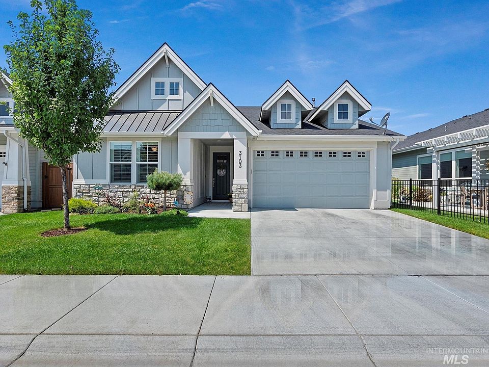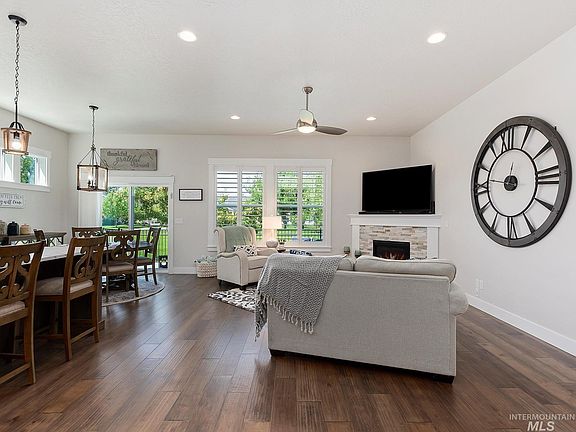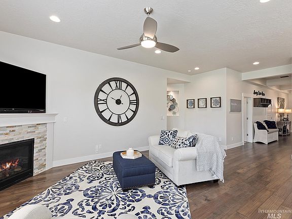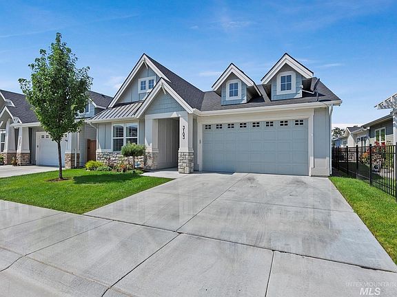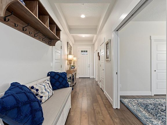 Discover this dream home in the heart of Meridian w/ this stunning Village Bungalows residence, designed exclusively for the 55+ active lifestyle. This elegant abode features hardwood floors, upgraded carpet, & soft-close cabinetry throughout. Enjoy cooking w/ high-end Bosch SS appliances, quartz countertops, walk-in panty & a full subway tile backsplash in the kitchen. The open floor plan boasts 10-ft ceilings, coffered accents & LED recessed lighting, enhancing the spacious feel. Relax in the primary suite w/ a luxurious marble-tiled shower & frameless glass door. Additional amenities include a 20ft Sunsetter Electric Retractable awning over the patio plumbed w/ natural gas, a central vacuum, & a private driveway. HOA covers lawn maintenance + irrigation & the community boasts weekly social events & a clubhouse w/ gym, outdoor pool + patio & 1.2+ acres of landscaped parks. Nearly 100 restaurants & major retailers nearby, providing convenience at your doorstep. Don't miss out on this incredible opportunity!