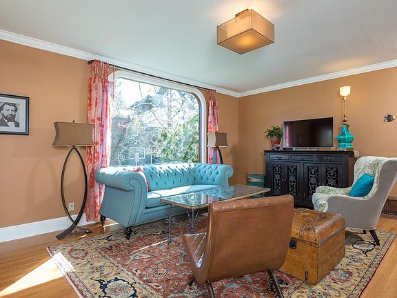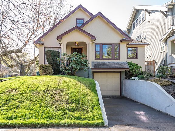 Wonderful jewel box English Tudor style house-Harwood floors throughout,leaded glass windows, period woodwork and style-The upstairs master boasts an open floor plan and separate dressing room- Bath w/jetted tub, tile work and vintage vanity. All appliances included. In the private back yard is a lovely deck and established garden, totally secluded and fenced. The property is elevated above the street and 2 blocks from Irvington Park!