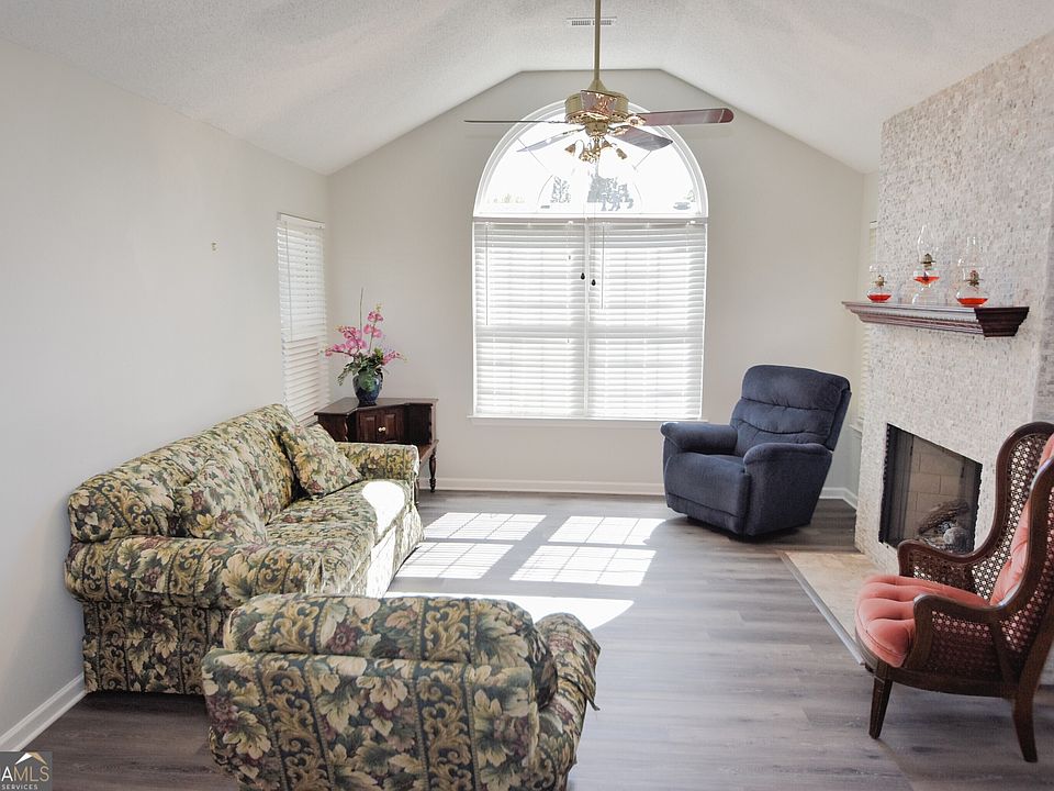 Beautiful, light filled end unit on a private area lot. Enjoy life in this one level, well maintained 2BR/2BA Garden Unit at Harris Orchards of Duluth active community. Brand New windows, water heater, gas log insert/masonry surround in Great Rm, plus newly installed luxury vinyl plank floors which are waterproof, durable, & gorgeous! Vaulted ceilings, palladium windows, Private Courtyard/Patio, 2 car attached garage are just a few of the great features. The open concept floor plan features spacious kitchen with white cabinetry, new granite counters, breakfast bar and opens to dining and great room. Relax in the amazing private outdoor courtyard. Primary suite with oversized vanity, walk-in shower and closet. Monthly fees include use/maintenance of common grounds with pond & fountain, clubhouse, pool, fitness, individual yard and exterior maintenance of the home, w/ exception of windows & garage door. Fantastic location convenient to I-85, walking trails, historic downtown of Duluth with new shops, restaurants, theaters, city green with fountain & amphitheater for festivals & concerts. New friends, new beginnings and new memories await!