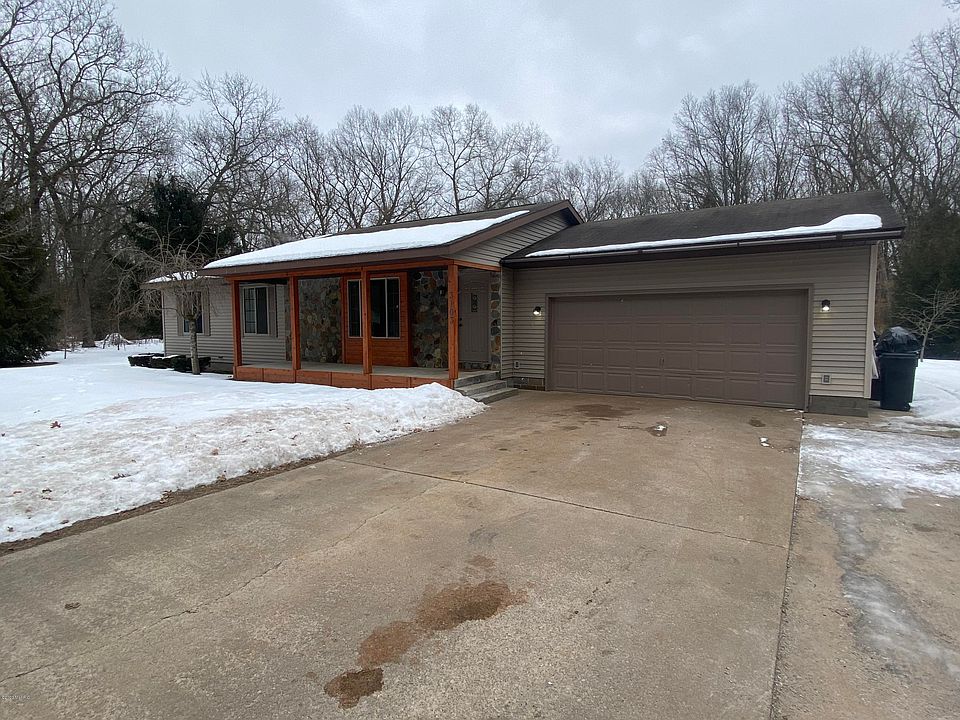Low maintenance ranch on 2.61 acres! Three bedroom 1.5 Bath with great layout. One level living with main floor master and laundry. Attached garage and covered porch along with a deck in back to view the nature. Recently remodeled flooring and kitchen counters. Partially finished basement and workshop in lower level. A great location and large lot north of Muskegon.