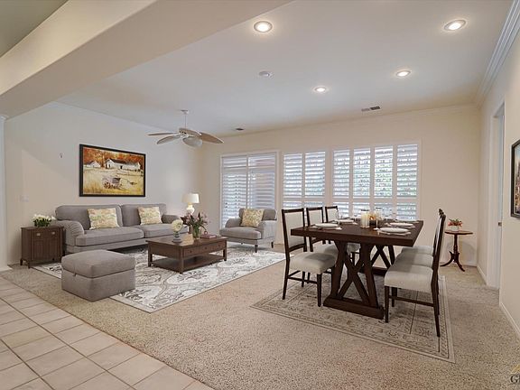 Nestled quietly on a beautiful lot, this property is the perfect choice for someone looking to buy a spacious home in The Greens at Seven Oaks. Enter through a charming courtyard into your large formal and living dining space with views onto the patio. The office can be a flex space for work, crafts or even converted into a 3rd bedroom. The north wing of the home offers a large kitchen overlooking a dining area and second living room. Shutters throughout the home provide privacy as well as keeping out the hot summer sun. Built in cabinets provide extra storage throughout the home. In addition there is custom cabinetry in the primary bedroom walk in closet. Tall ceilings throughout the home provide an open and airy feeling. The patio offers lots of privacy and lush landscaping. Give us a call to schedule your personal tour, explore the unique features first-hand, and fall in love with a property that checks off your must-haves in your next home!