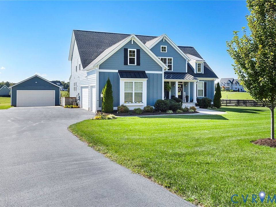 This 3,082 square foot Augusta plan by Main Street Homes on 4+ acres in Tilman's Farm will have you feeding the deer or watching picturesque sunsets each night. Outside, upgrade your outdoor experience with its screened porch, large paver patio with firepit and sidewalk, fenced rear yard, manicured landscaping, and even a raised garden for you gardeners. The home boasts 2 garages - one attached three-car garage and another detached two-car garage (with 8' door and mini-split HVAC) for all your toys or work equipment and full rear solar panels to shrink that electric bill. Situated on one of the larger lots in the neighborhood, the updates and curb appeal are apparent from the moment you turn the corner. Significant updates over standard include metal roofs on dormers, rear bay window, stained beams in great room, barn door in loft, appliance package, craftsman trim throughout, staircase with oak stairs and risers, craftsman wainscotting in dining room and foyer, shiplap in owner's bedroom, undermount lighting in kitchen, water filtration system, irrigation, and generator hookup with propane gas generator. Step into your new home's foyer with engineered hardwoods throughout the main living area. Relax in your two-story great room with gas fireplace or cook in your chef's kitchen with gas stove, stainless appliances, black granite, and island with table height bar. The home boasts both an eat-in kitchen and formal dining room for family meals or entertaining. Downstairs includes the owner's bedroom and luxury bath with full-glass shower, tub, and double vanity along with a second full downstairs bedroom and bath. Don't miss the full picture window in the owner's bedroom to view those sunsets! Upstairs step into the cozy loft with engineered hardwoods, ceiling fan, and matching barn door with two additional bedrooms, third full bath, and a bonus room. Buy this home and put your toolbox away!