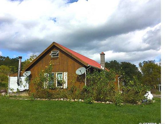 4 acre cabin close to Keuka Lake State Park and Keuka College. Home features open living space, natural wood work. Large 2 car insulated garage with heated studio off the back, deck and dock to your private pond make this an excellent place to tinker and enjoy nature. Just installed forced air furnace with central air. Priced below assessment at $105,000