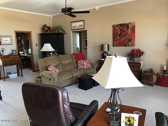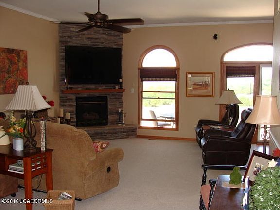 Beautiful newer stone fireplaces are the focal points of the spacious great room and the sun room addition. Scenic views of the surrounding countryside from the large front porch and the huge sun room on the backside. Updated kitchen with solid surface countertops and stainless steel appliances. Updated baths too with tiled shower in master bath. Very nice home office with lots of cabinetry. Both formal and informal dining spaces. Laundry/sewing room with cabinetry. New roof and HVAC systems in June, 2018. Sun room has heat/ac and a stone gas fireplace for added warmth in the Winter. Huge patio off the sun room with decorative finish and vinyl railing. Unfinished basement has so much potential for future finish and storage space galore! Blair Oaks Schools!