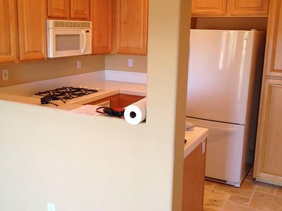 Nice corner lot w/ balcony looking over trails, New flooring, paint, washer & dryer, nice appliances, AC, two bedrooms & two bathrooms up stairs, walk in closets with mirrored doors, entry from front door has a room that can be used as office, all other rooms/living area is upstairs, ceiling fan in Master, Travertine flooring in Kitchen, master Bath & 2nd bathroom, gas cook top, newly oven & dishwasher, faucet. Cascada has its own community pool/hot tub, also, Rancho Carrillo community center has nice large pool/hot tub & banquet room for parties etc. close to shopping & 5 freeway. Owner pays HOA