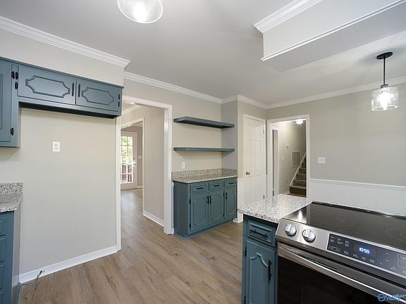 This home is a must see!! Gorgeous 4/3 brick split level home located in desirable Burningtree neighborhood. Two spacious living areas. Open kitchen with granite, tile backsplash, pantry and new SS appliances. New paint in and out. New hardware. Smooth ceilings, crown molding and LVP throughout main areas. Master has two large closets and his and hers vanities in ensuite bathroom. Updated farmhouse style lighting and beautiful wood burning fireplace. Two car garage. Large flat lot with covered front porch and back deck for relaxing or entertaining. Convenient to I-65 and 565, minutes from downtown Decatur, Burningtree Country Club, and many shops/restaurants.