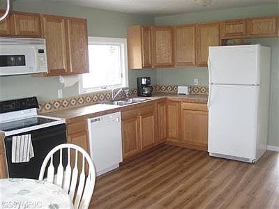 Remodeled 3 Bedroom House with Large 3 Stall Garage. Kitchen Features New Ceramic Tile Counterops, Cabinets and Flooring. Full Bath has all new Floor Boards, Flooring, Tub, Toilet, Vanity and Lights. All 3 Bedrooms include New Finished Drywall, Paint, Flooring and Lights. Entrance has an Office Area. Dining Area has Sliders to Deck. Garage is 2 Stalls in Front and 10' Door on Side. New Vinyl Siding and Windows. Municipal Playground Next Door.